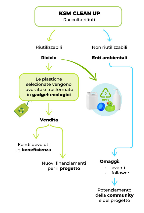 Più partecipi, più vieni premiato con gadget esclusivi KSM. Un modo concreto per portare con te il cambiamento che crei.